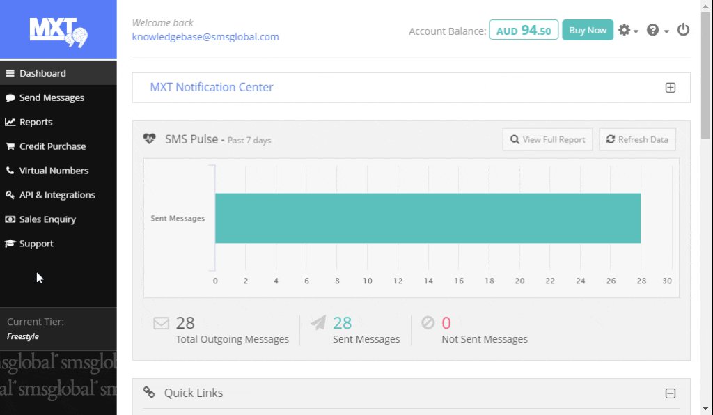How to purchase SMSGlobal credits in MXT